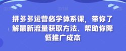 拼多多运营必学体系课,带你了解最新流量获取方法、帮助你降低推广成本
