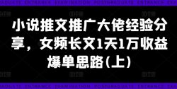 小说推文推广大佬经验分享,女频长文1天1万收益爆单思路(上)