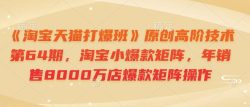 《淘宝天猫打爆班》原创高阶技术第64期,淘宝小爆款矩阵,年销售8000万店爆款矩阵操作