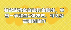 老款游戏全自动打金搬砖,单号一天收益2张左右,可以多号矩阵操作【揭秘】